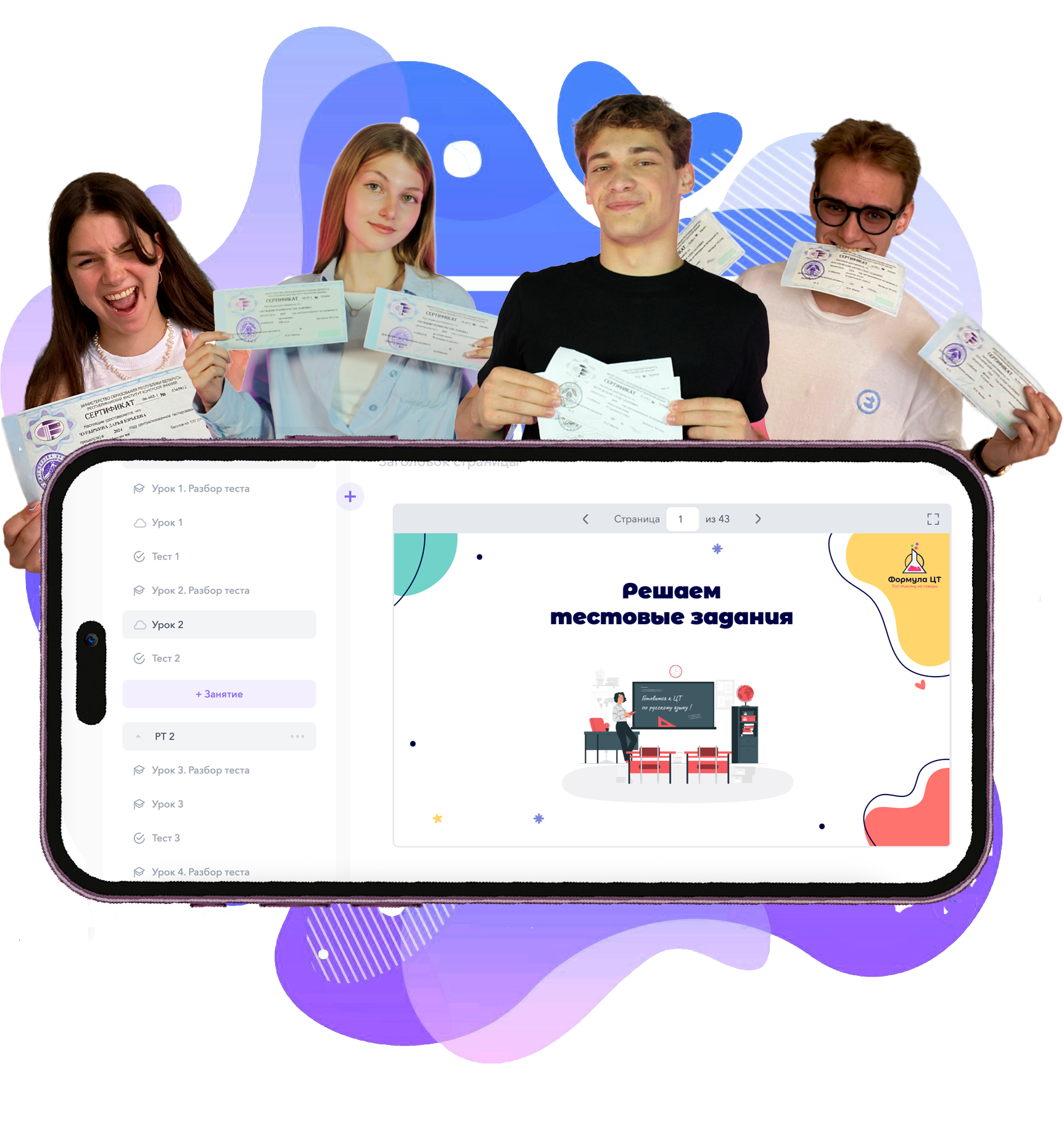 Знание теории без регулярного решения тестов не даёт стабильного балла. На курсе практика - основа каждого занятия.